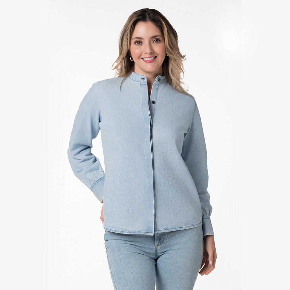 Blusa denim cuello neru para mujer Lec Lee - Índigo Claro