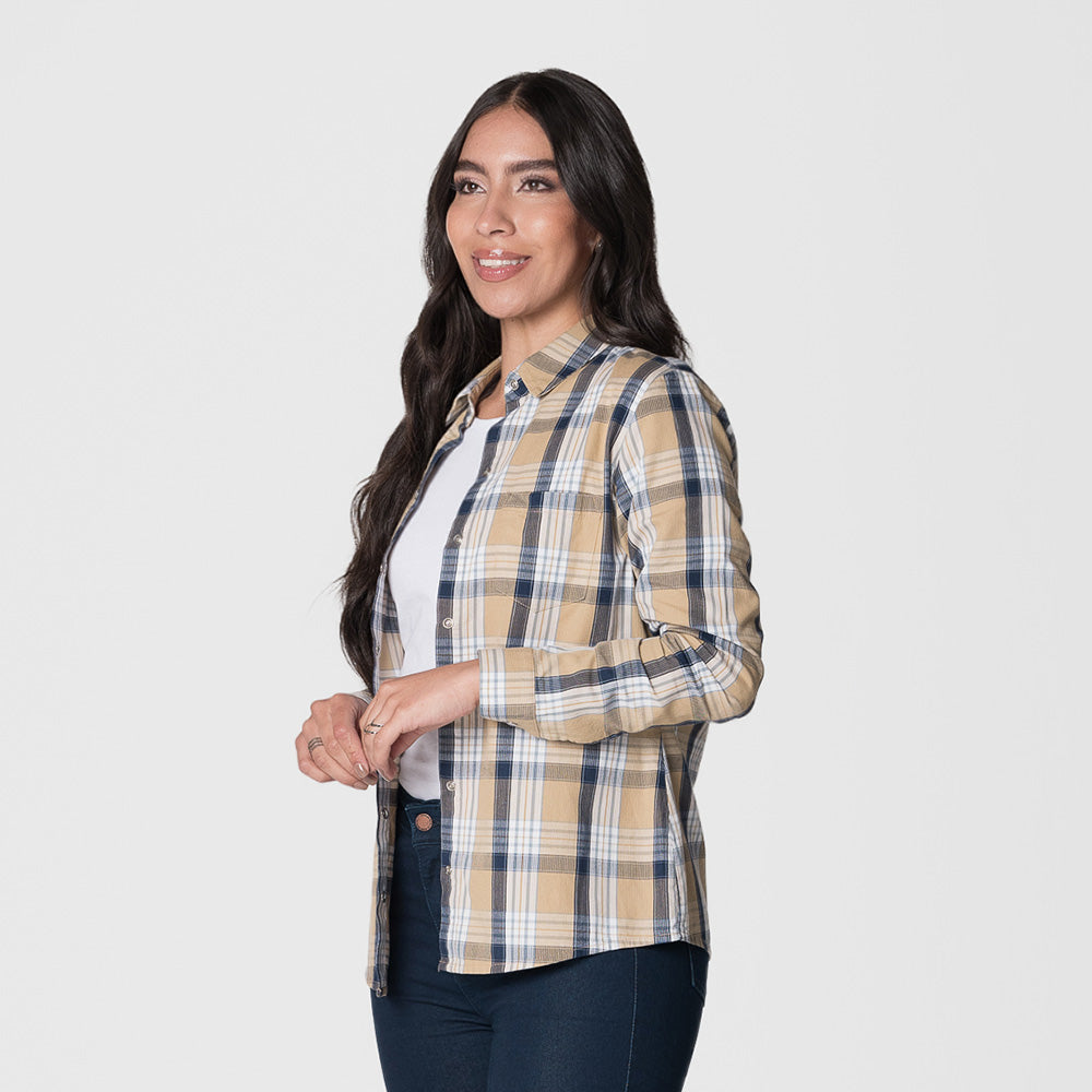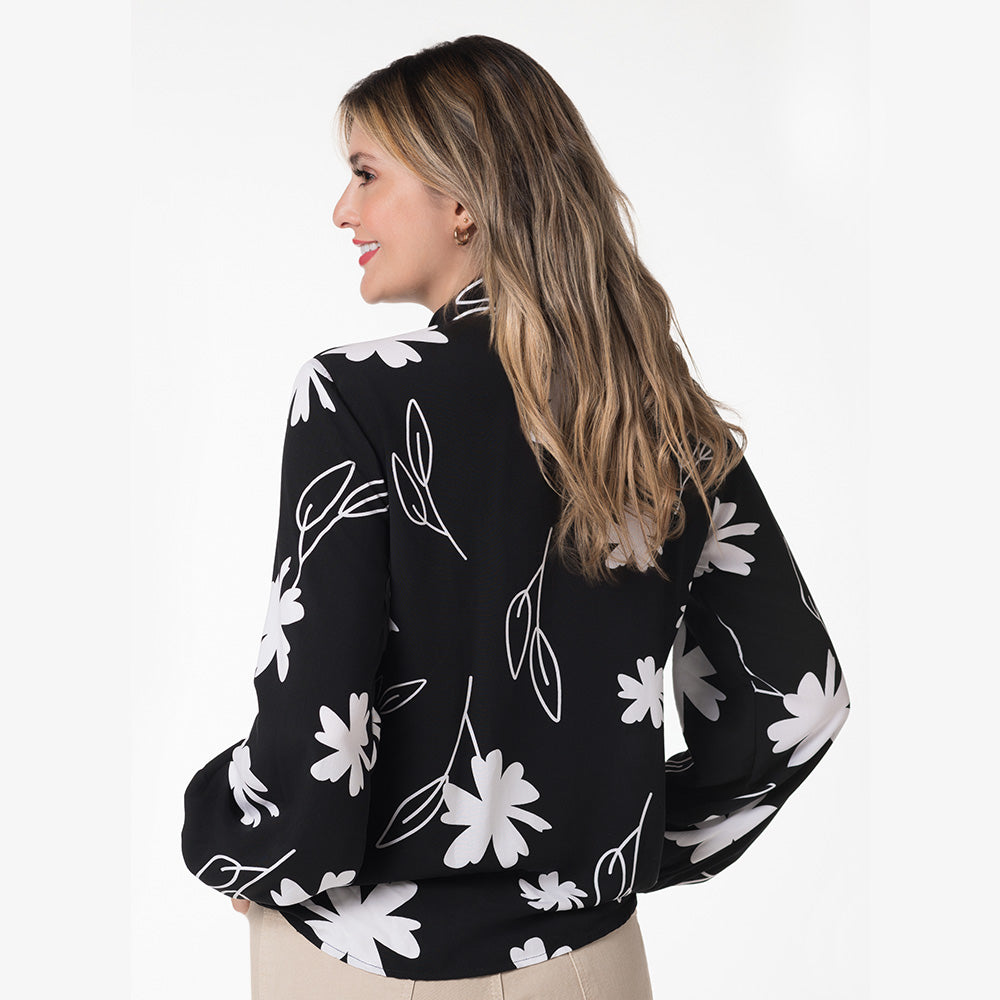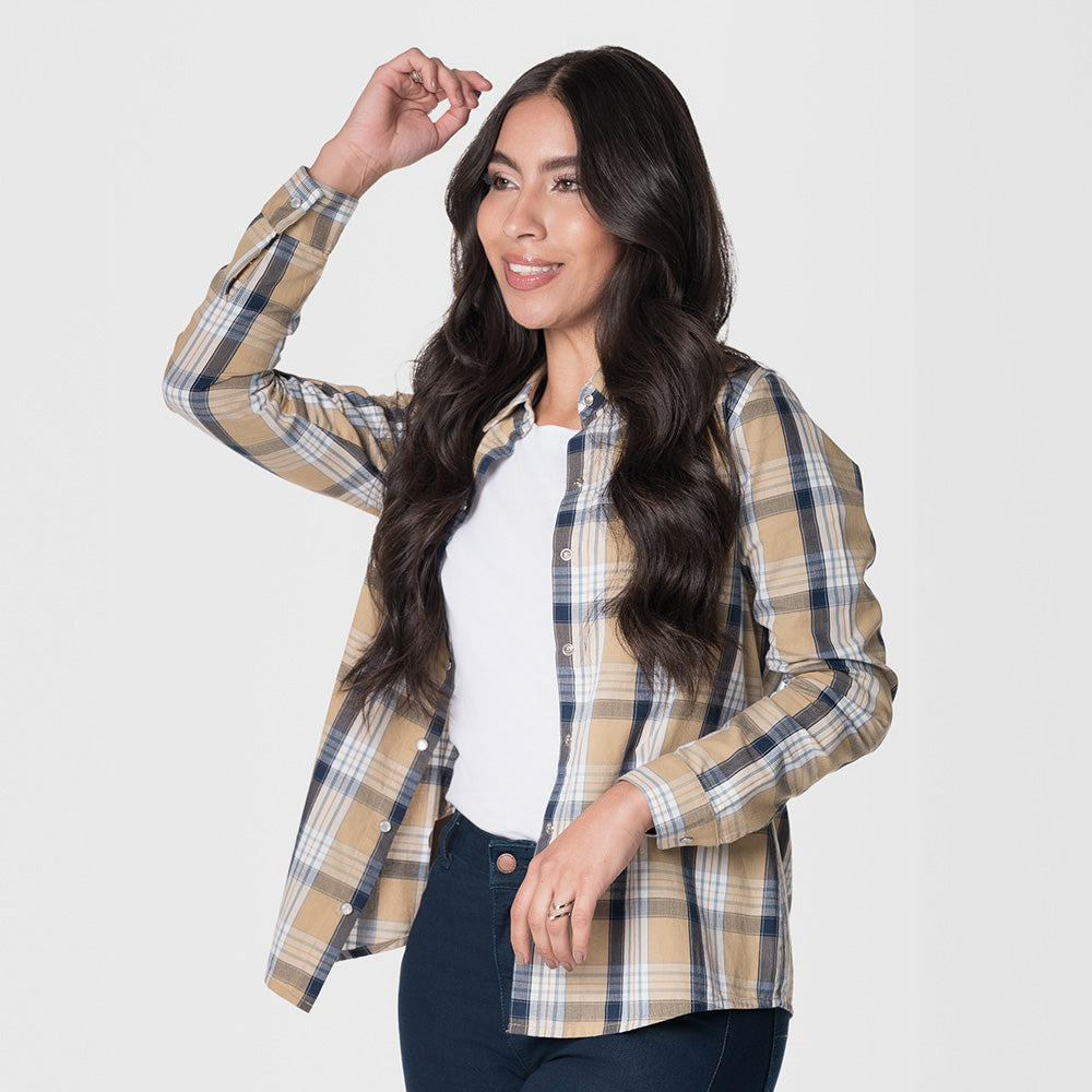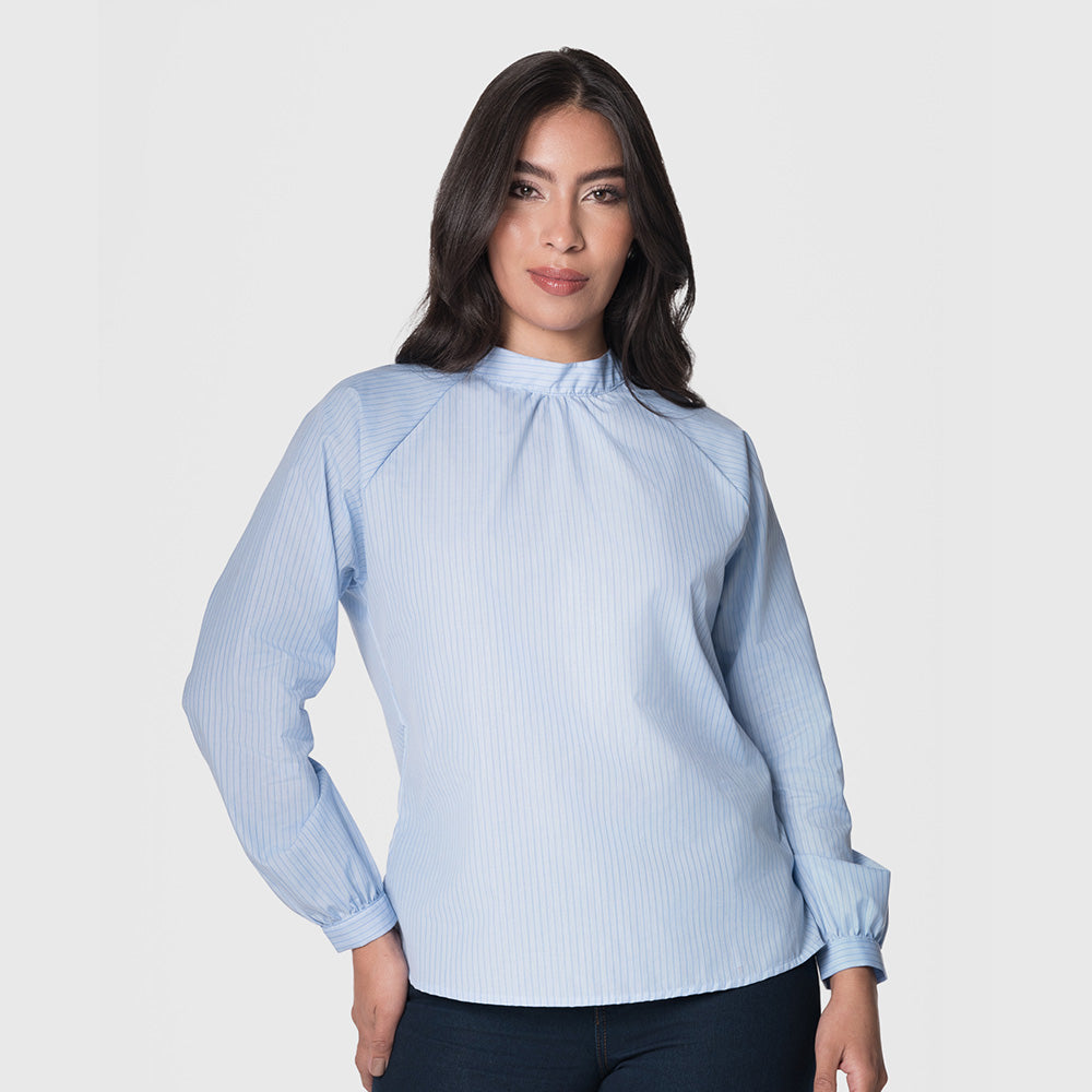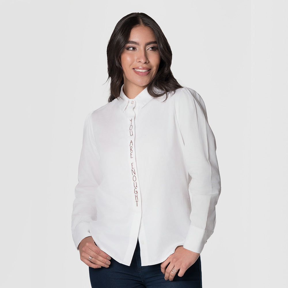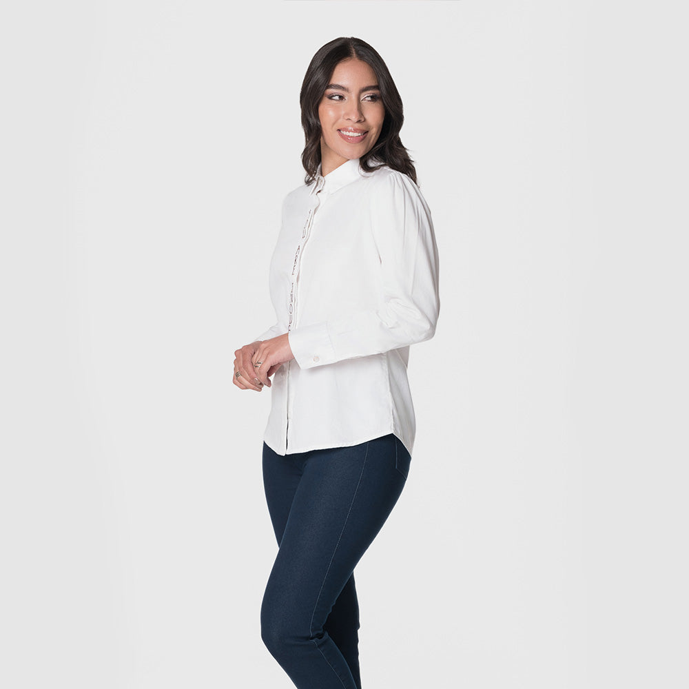 Blusa femenina con mangas largas, diseñada para ofrecer un look elegante y versátil. Su cierre con botones al frente añade un toque clásico, mientras que su confección en algodón asegura comodidad y frescura durante todo el día. Perfecta para combinar con jeans o pantalones más formales, ideal para ocasiones casuales o semiformales. Composición: 100% Algodón.