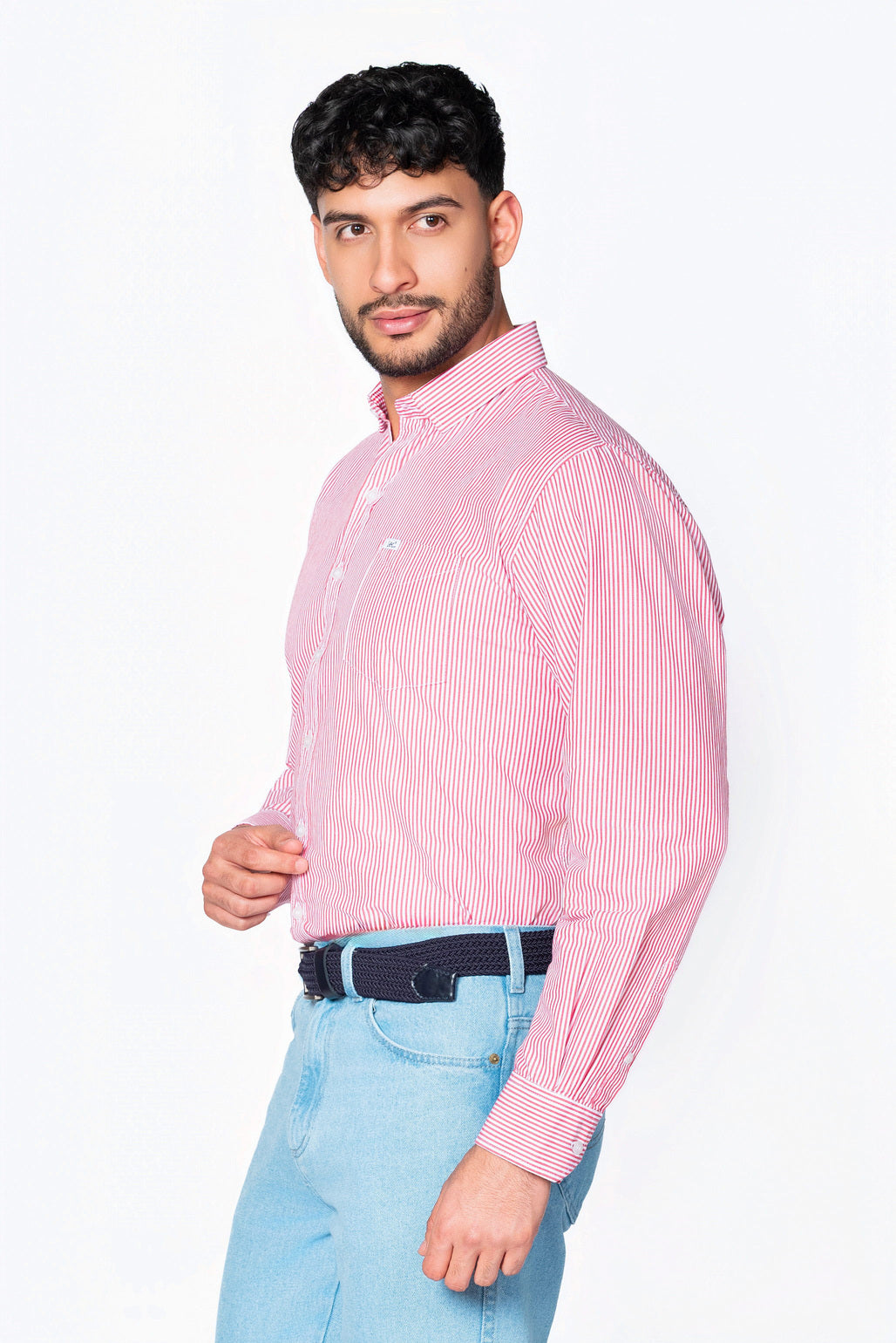 Eleva tu estilo diario con esta camisa para hombre Lec Lee 100% algodón, diseñada para quienes buscan frescura, comodidad y un look siempre pulido. Su diseño a rayas aporta un toque moderno y versátil que se adapta tanto a días de oficina como a planes casuales.