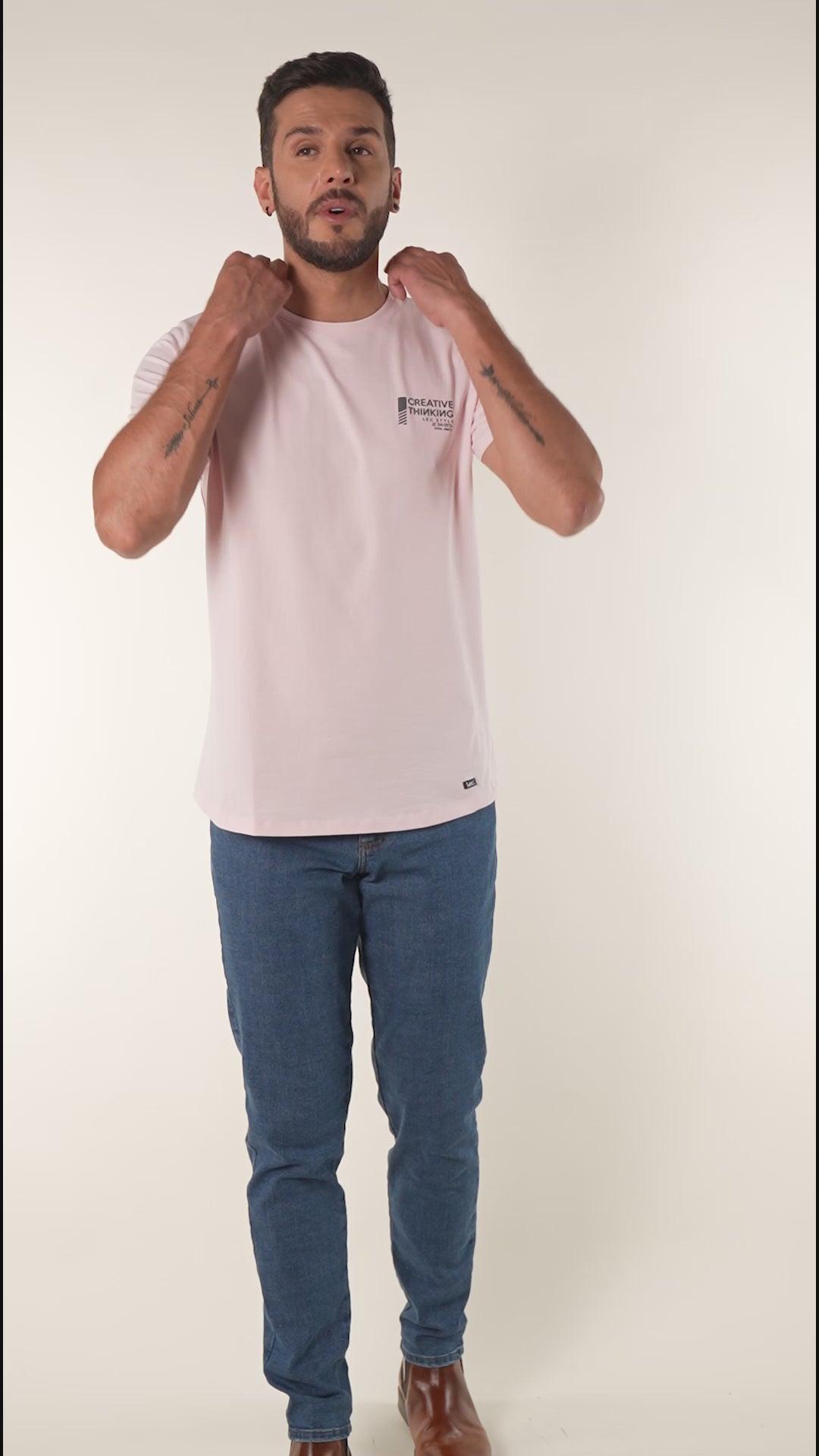 Destaca con esta camiseta para hombre de manga corta y cuello redondo, diseñada para quienes valoran la comodidad sin perder el estilo. Presenta un estampado frontal con la frase “Creative Thinking” y un diseño gráfico posterior que cubre la parte superior de la espalda, creando un look moderno y lleno de actitud.